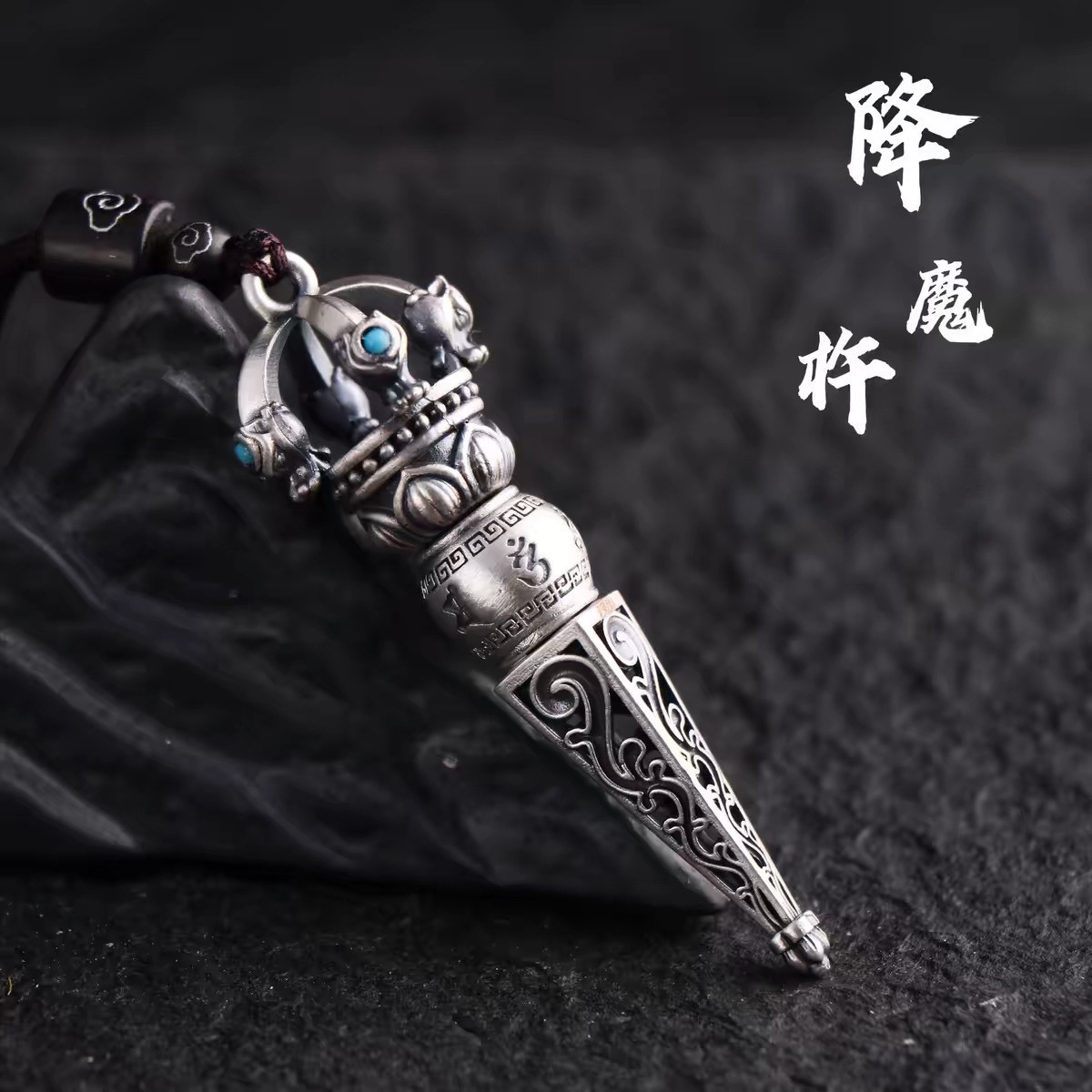 Six-Character Motto Vajra Pestle Pendant Demon-Slaying Pestle Retro Ethnic Style Men's and Women's Imitation Thai Silver Xizang Necklace Pendant