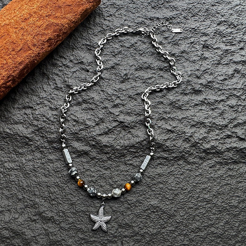 Gag Necklace Men's Titanium Steel High-End Versatile Tiger Eye Stone Necklace Starfish Necklace Ins Retro Accessories Students