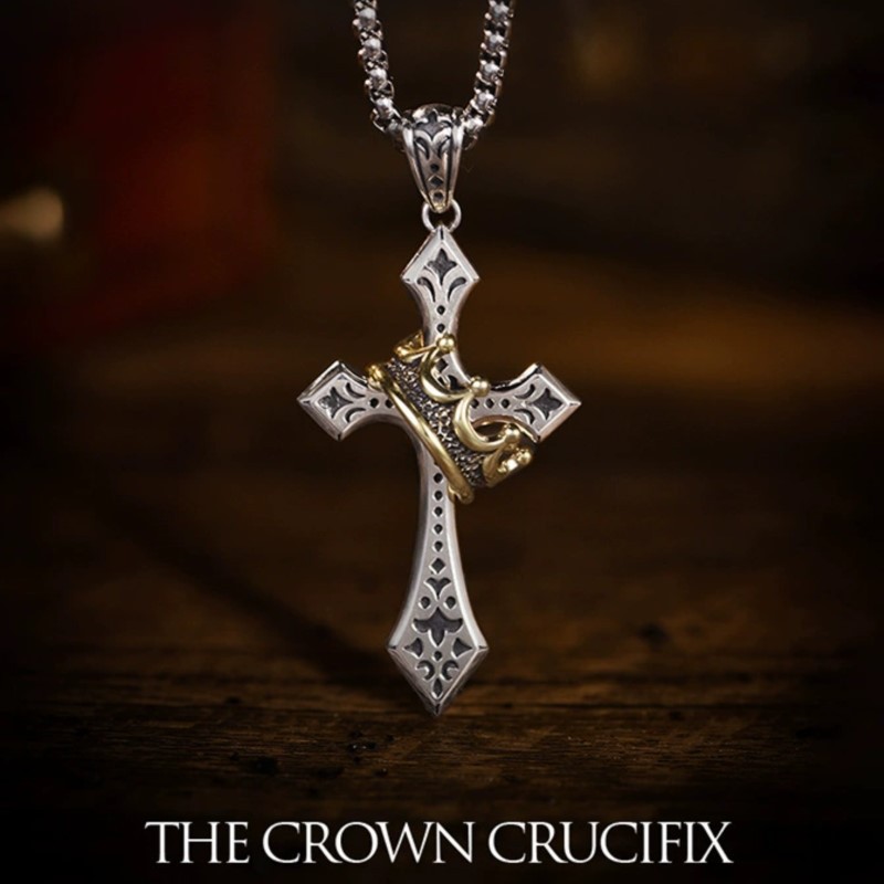 Cross-Border Hot Selling Personalized Retro Crown Cross Pendant Necklace Men's Trendy Hip-Hop Necklace Manufacturer Wholesale