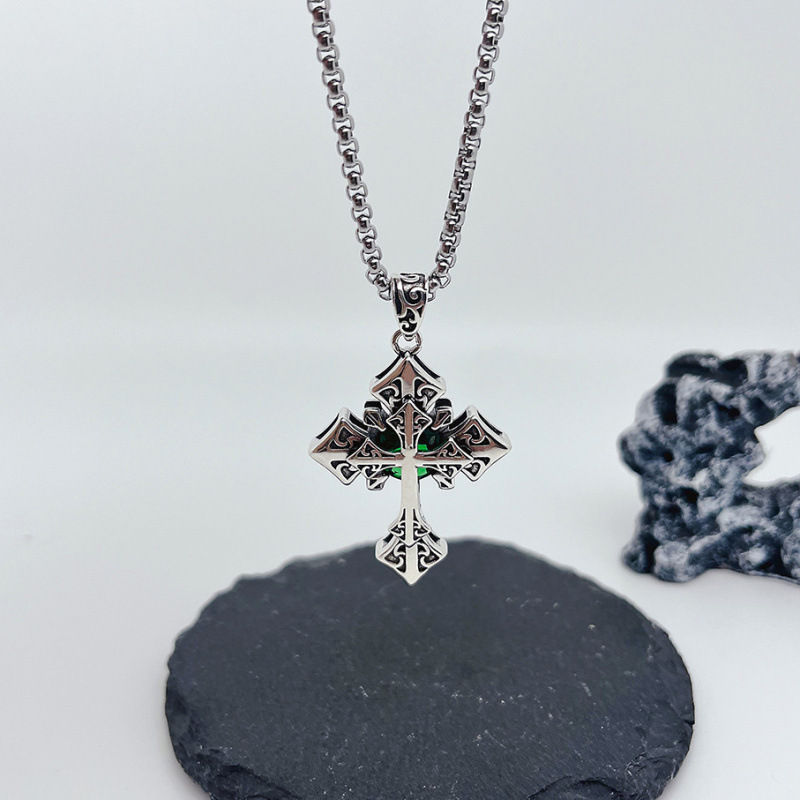 P0017-NK28 European and American Personality Retro Crusader Cross Men's Titanium Steel Pendant Necklace