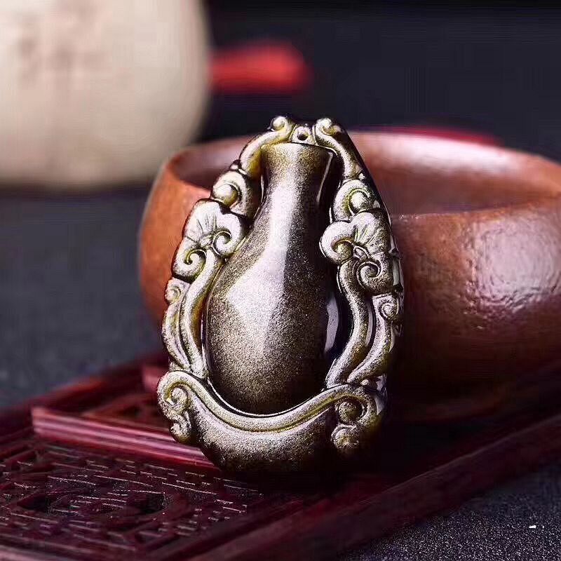 Natural Gold Obsidian Ruyi Vase Pendant DIY Jewelry Accessories Men's and Women's Necklaces