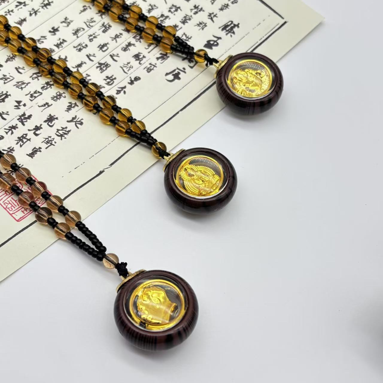 Double-sided Wooden Frame Gold Foil Buddha Pendant Maitreya Buddha Guanyin Necklace Men's and Women's Fashion sweater chain Factory Hot Sale