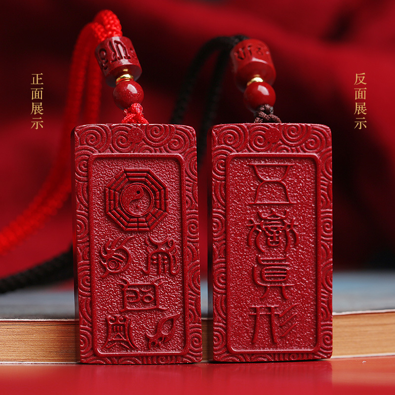 Cinnabar Wuyue real-shaped pendant nine-word mantra keychain five-element gossip no-matter card pendant men's necklace Taoist