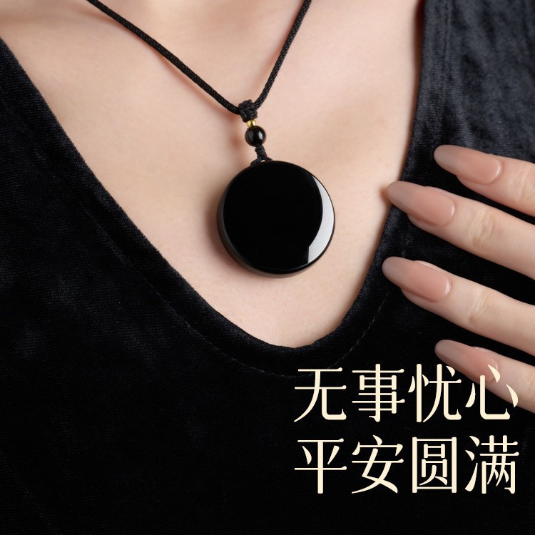 Live Supply of Natural Obsidian Safety Buckle Amulet, Peace Pendant, Men's Jade Necklace for Women