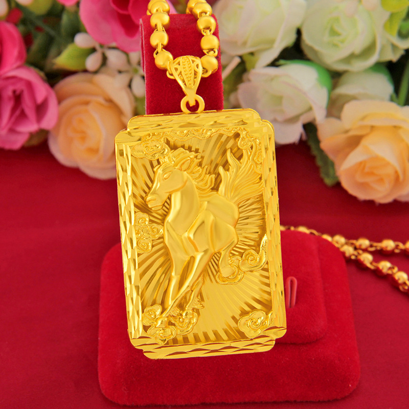Vietnam sand gold horse to success car flower imitation gold tag fortune sand gold square necklace zodiac pendant manufacturers wholesale
