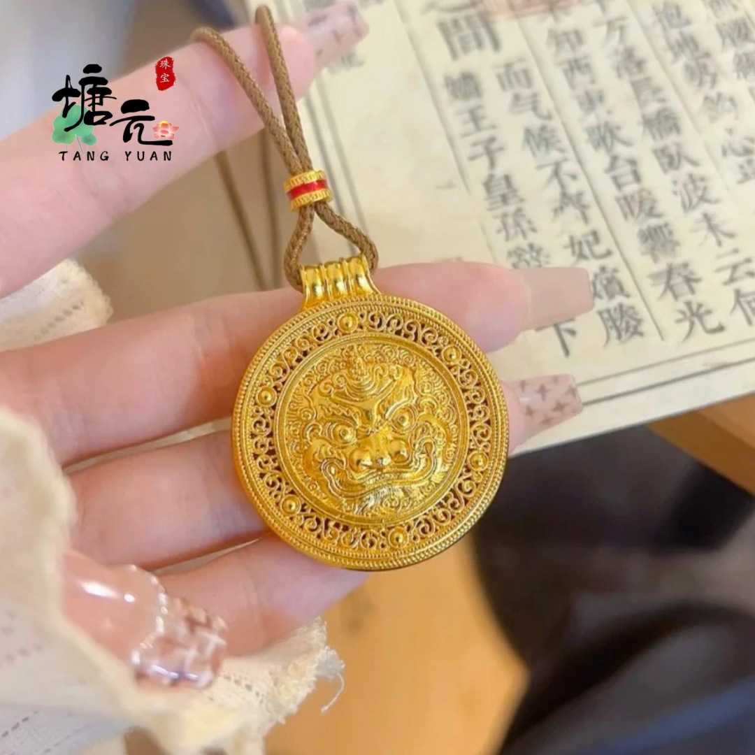 Little Red Book Same Style Sand Gold Ancient Unicorn Pixiu Pendant Unisex Vintage Filigree Fortune Pendant Sweater Chain