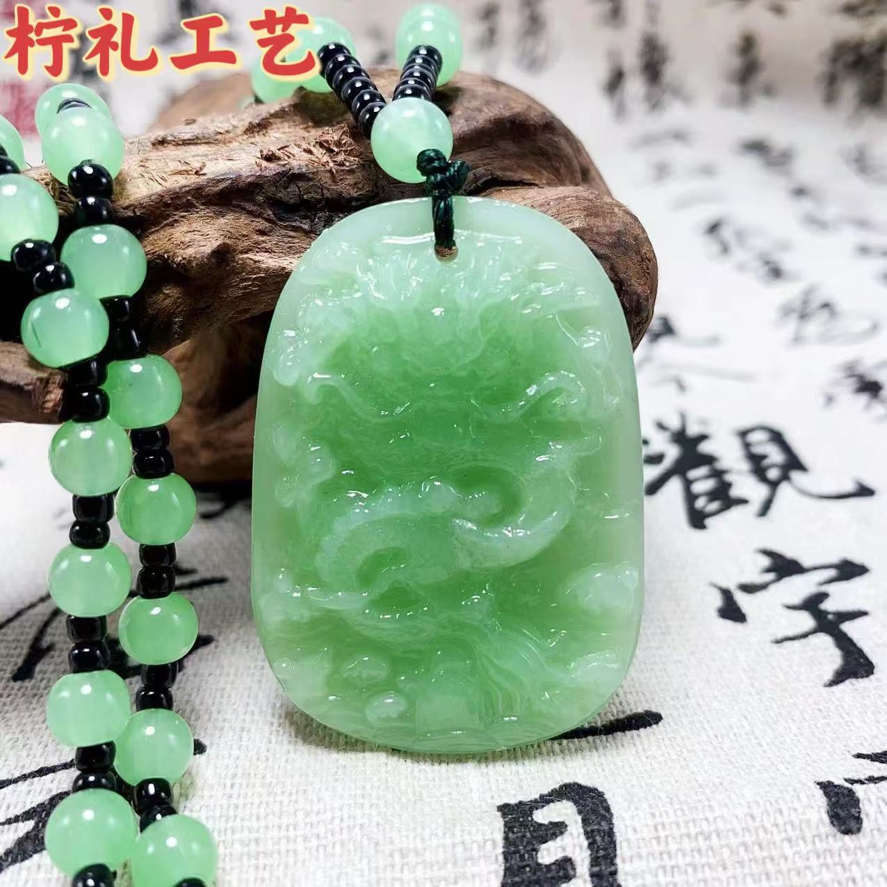 Natural Imitation Jade Sweater Chain Pendant Glazed Imitation Jade Dragon Brand Pendant Dragon-Shaped Domineering Necklace Sweater Chain Pendant for Men