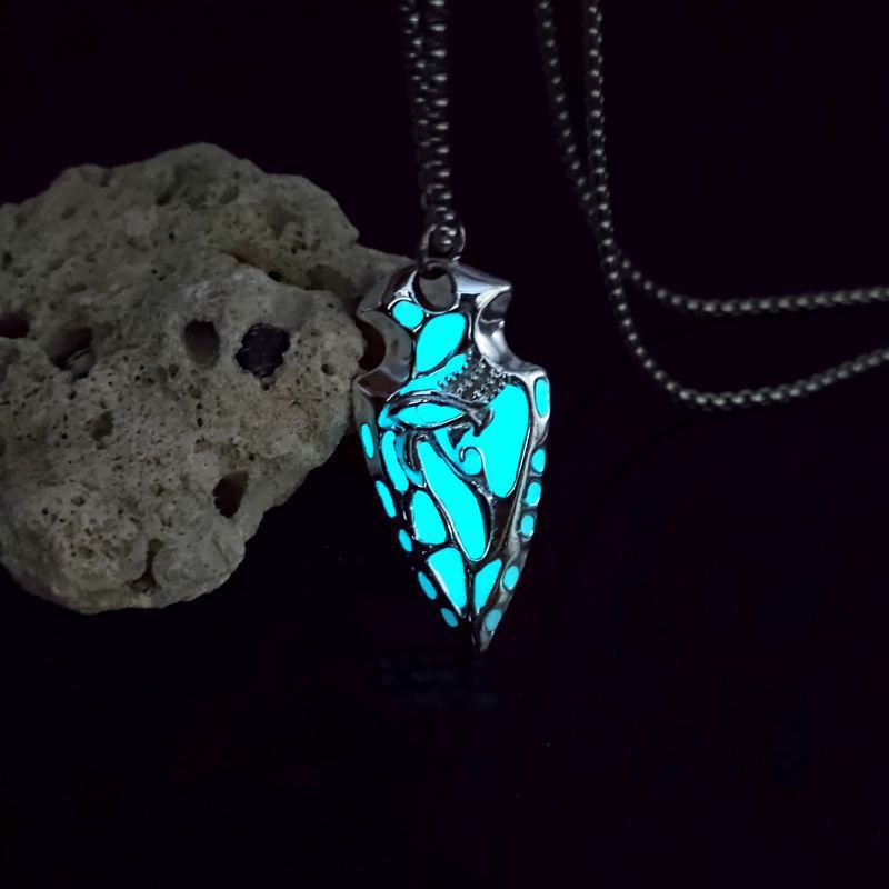 Aliexpress Hot Selling Titanium Steel Chain Retro Viking Triangle Luminous Shield Eye of Horus Luminous Men's Pendant