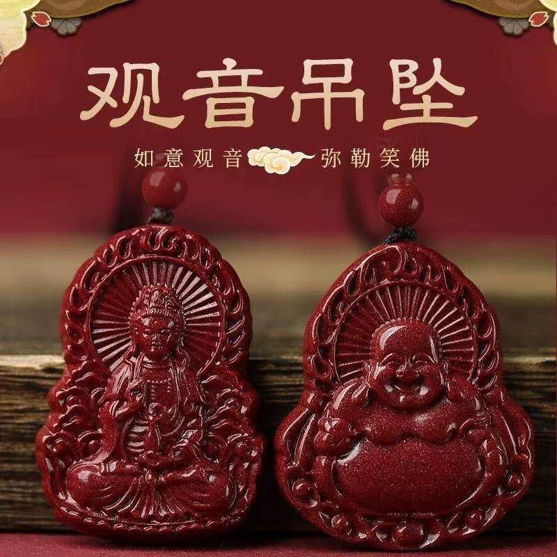 Cinnabar Purple Gold Sand High-End Men's Guanyin Bodhisattva Pendant Women's Maitreya Laughing Buddha Protective Peace Pendant Cinnabar Wholesale