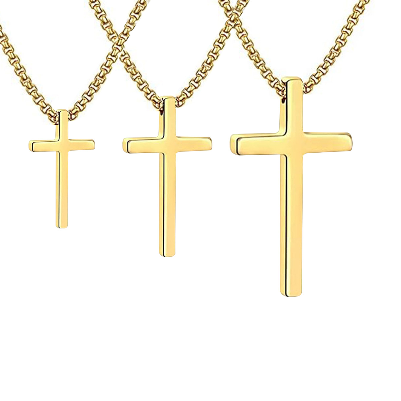 Amazon Trendy Hip Hop Necklace Stainless Steel Cross Pendant Necklace Personality Men's Three Layer Cross Necklace