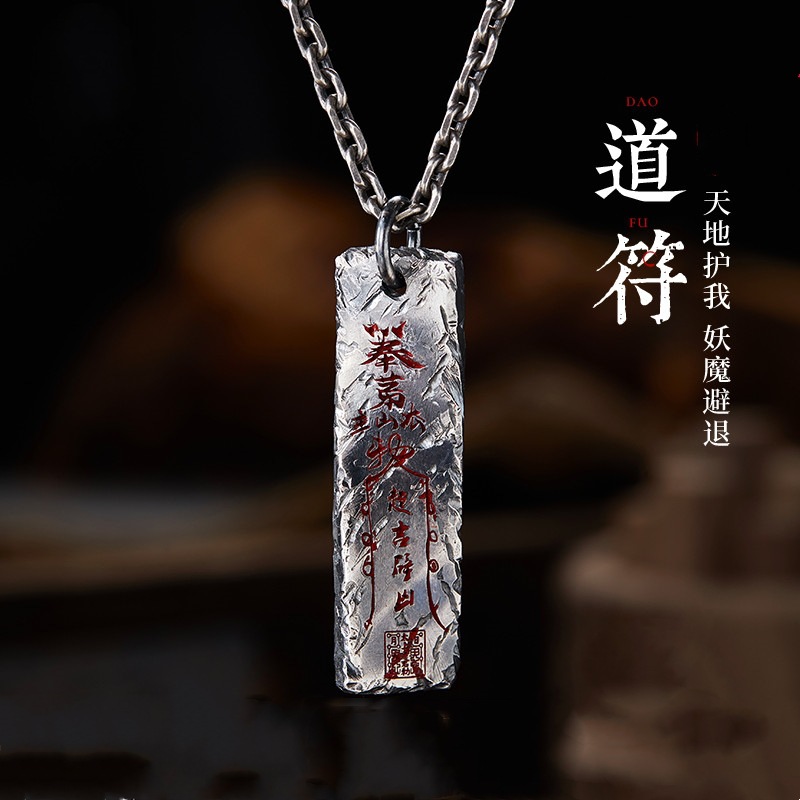 Chiba Ethnic Style "Taoist Talisman·Big Dipper" Pendant Men's Thai Silver Taoist Youth Retro Cinnabar Necklace