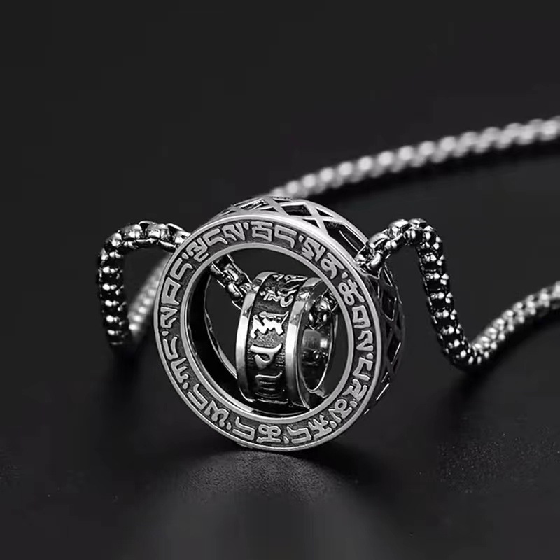 Literary style six-word mantra double ring necklace men's fashion niche design versatile personalized ethnic style jewelry