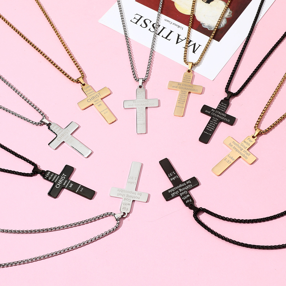 Cross necklace Amazon Hot Cross Necklace Letter Simple Alloy Men's Pendant Necklace