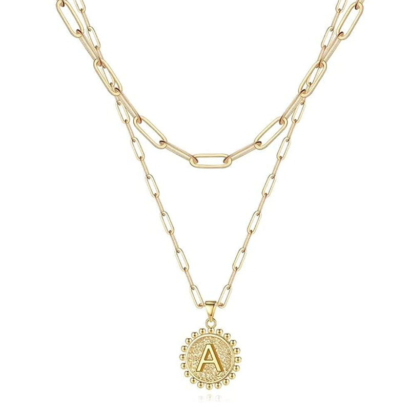 Stainless Steel Letter Accessories Double-Layer Clavicle Chain for Men and Women Round Titanium Steel Pendant Necklace Letter Pendant