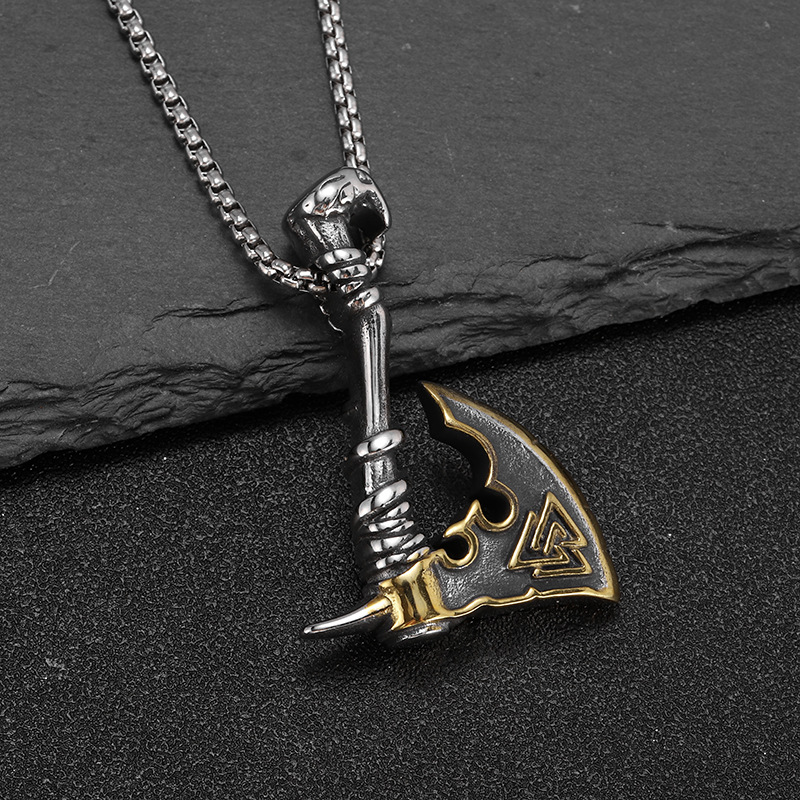 European and American Cross-Border Best-Selling Viking Stainless Steel Gold-Plated Ax Men's Pendant Necklace