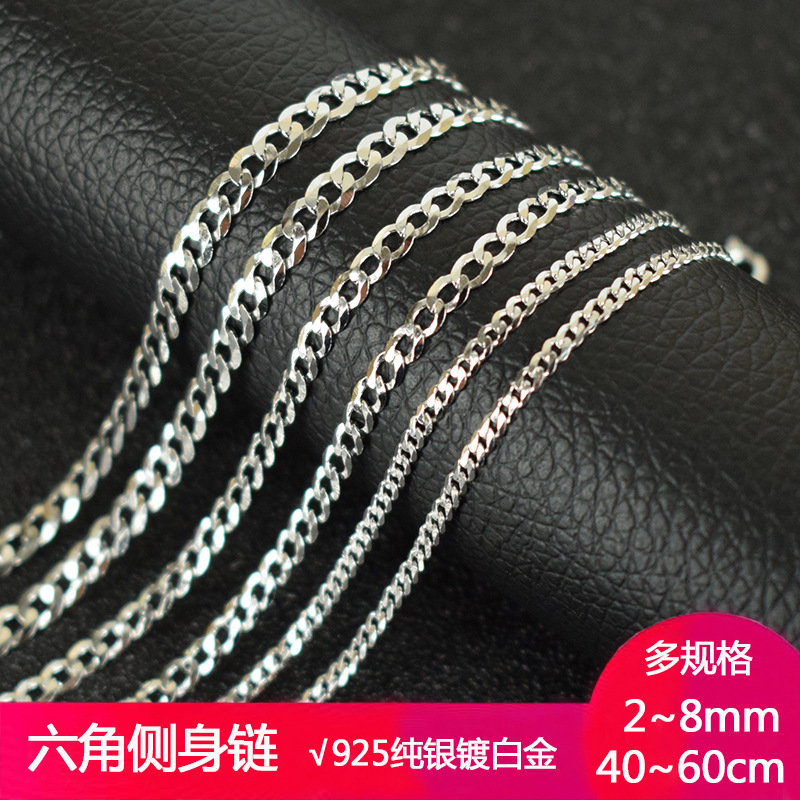 Hexahedral Cuba S925 Hexagonal Side Chain Silver Necklace Men's Hip-Hop Cuban Chain Thin Riding Whip Chain