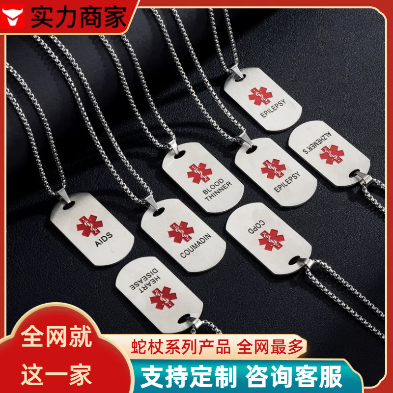 Huayue Amazon New Special Titanium Steel Snake Wand English Letters International Medical Brand Tag Men's Necklace Pendant