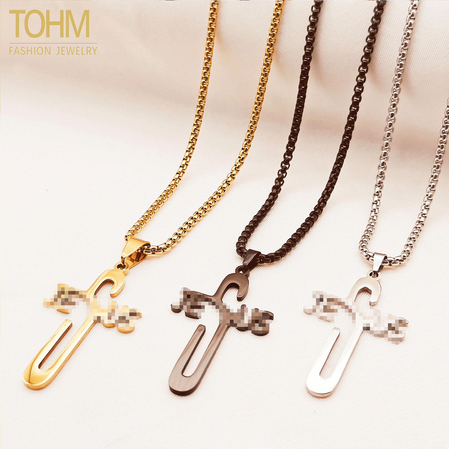 Tohm Cross-Border European and American Style Titanium Steel Accessories Men's Fashion Long Hollow Stainless Steel Cross Pendant Necklace