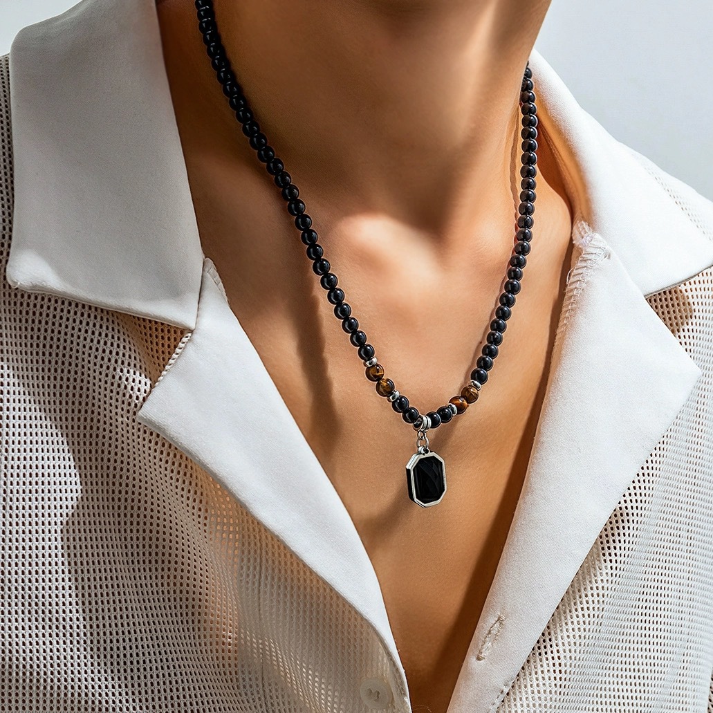 New Chinese Style National Fashion Tiger Eye Beaded Necklace Men's Personality Niche Advanced Sense Oil Drop Pendant Clavicle Chain Necklace Chain