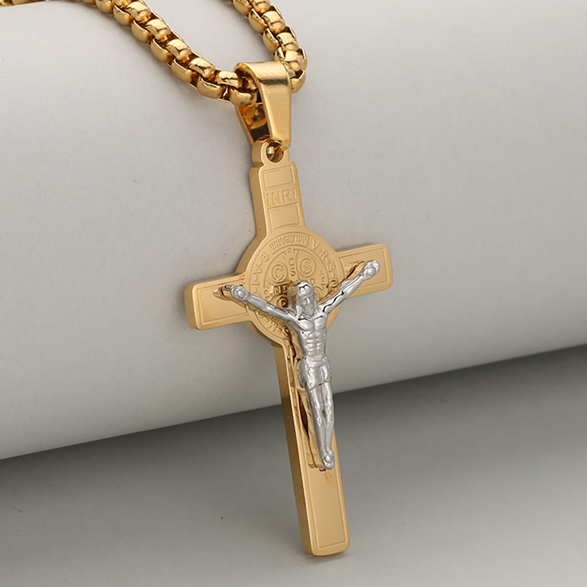 European and American Cross-Border Supply Amazon Hot Selling Fashion Hip-Hop Literary Retro Men's Stainless Steel Cross Pendant
