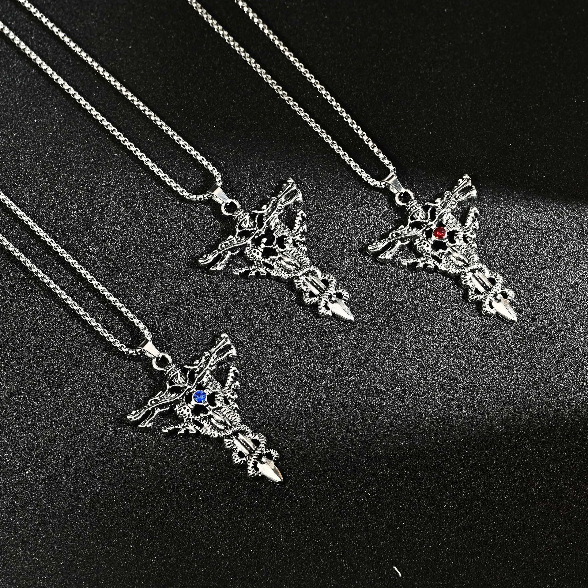 2025 Hip Hop Cross Necklace Men's Double Dragon Plate Sword Pendant Men's Personality Accessories Vintage Fashion Accessories