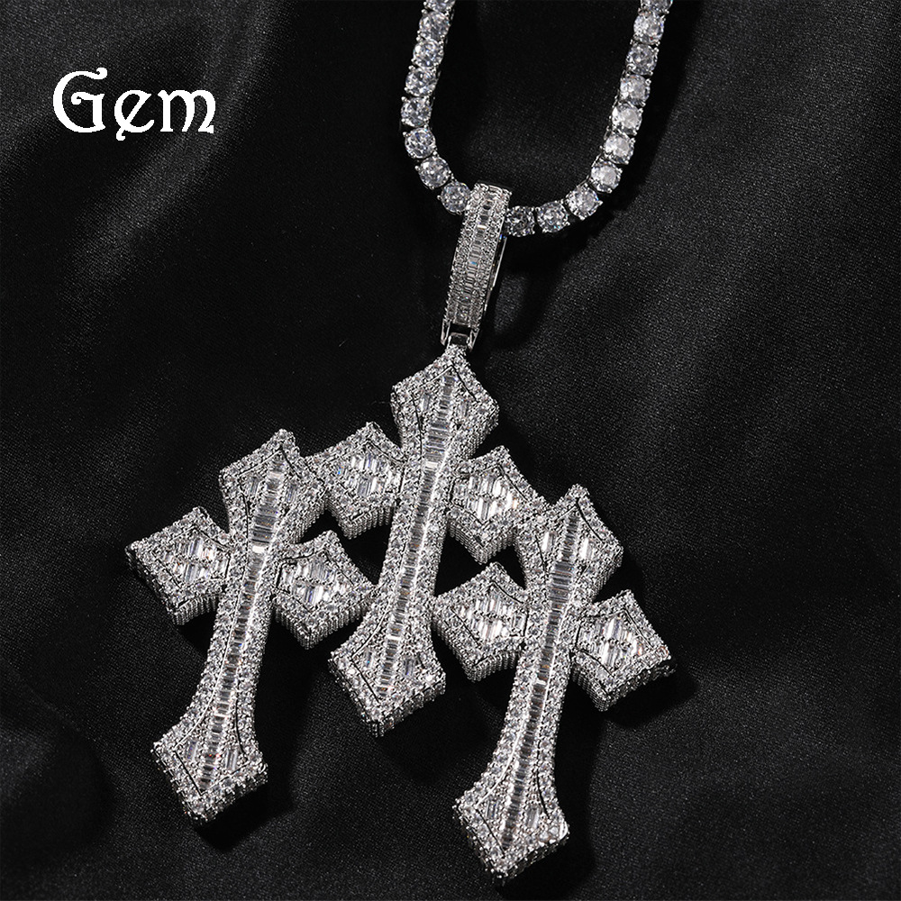 European and American classic retro cross pendant fashion copper set ladder square zirconium men's necklace hip-hop jewelry wholesale