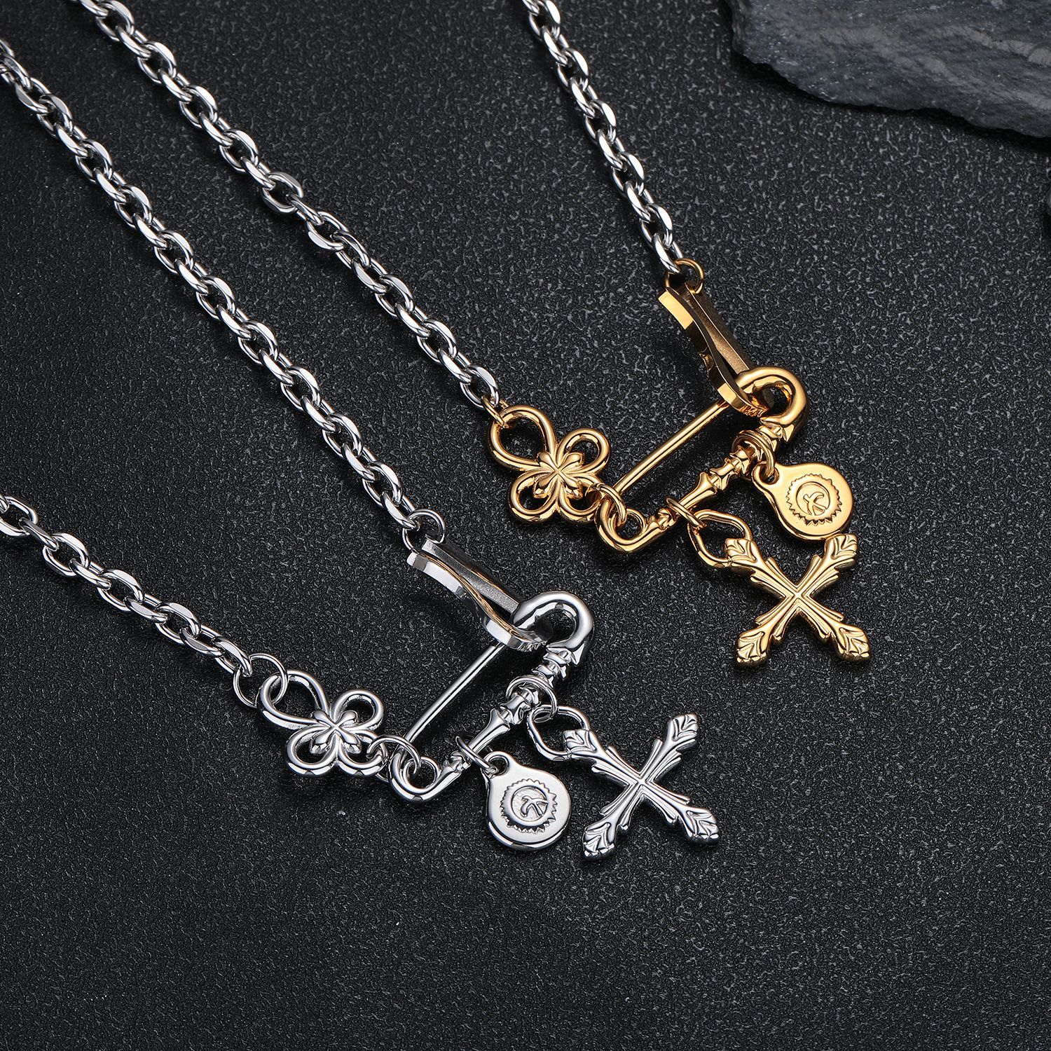 American Hip-Hop Style Pin Cross Flower Men's Necklace Women's Niche Design Clavicle Chain High-End Sweater Chain Accessories