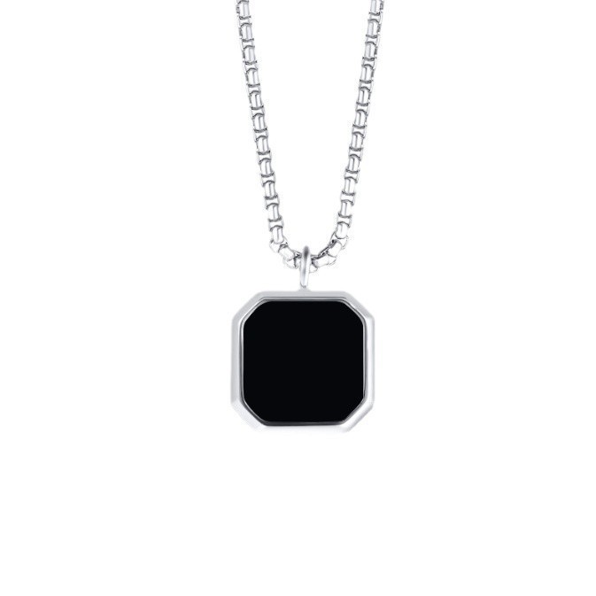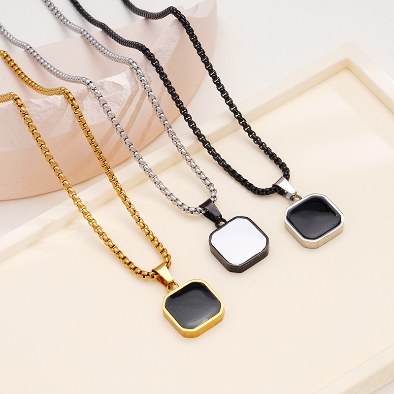 European and American Hot Sale Stainless Steel Chain Glue Drop Black Square Pendant Men's Sweater Stacked Necklace Fashion Sweater Chain Matching