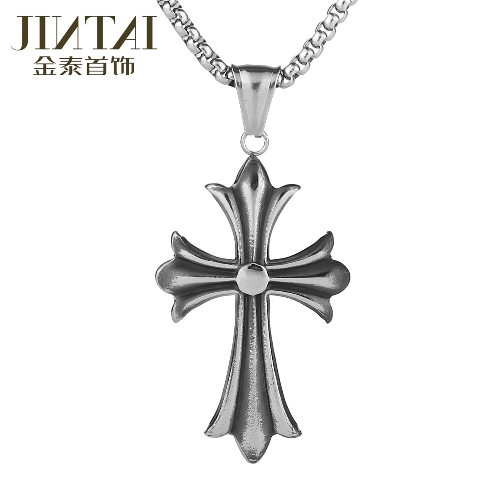 1 Piece Gift for Grandson Personality Trend Fashion Casual Cross Pendant with Card and Gift Box for Men
