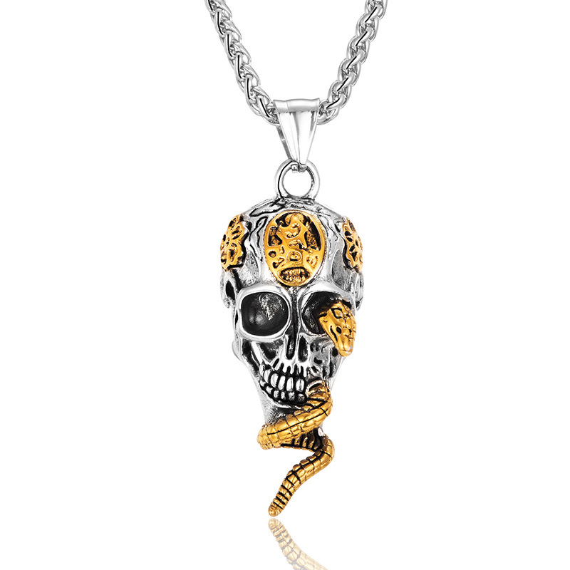 2025 Cross-Border New European and American Snake-Shaped Skull Halloween Pendant Necklace Retro Men's Skull Necklace