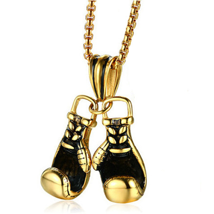 2021 European and American Double Knuckles Titanium Steel Pendant Necklace Personalized Men's Boxing Gloves Fitness Sports Accessories