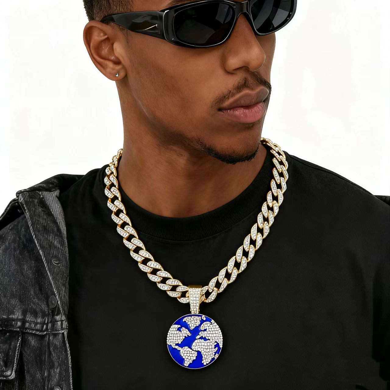 European and American Cross-Border New Product Dripping Oil Hip-Hop Planet Earth Pendant Cuban Necklace Men's Personalized Environmentally Friendly Alloy Jewelry