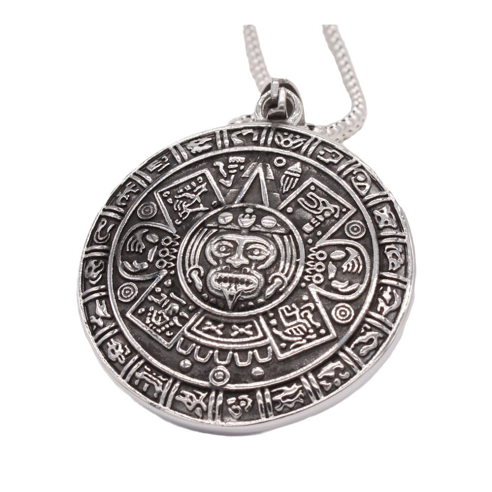 P1140 foreign trade jewelry wholesale European and American personality retro twelve constellation compass men's titanium steel pendant necklace