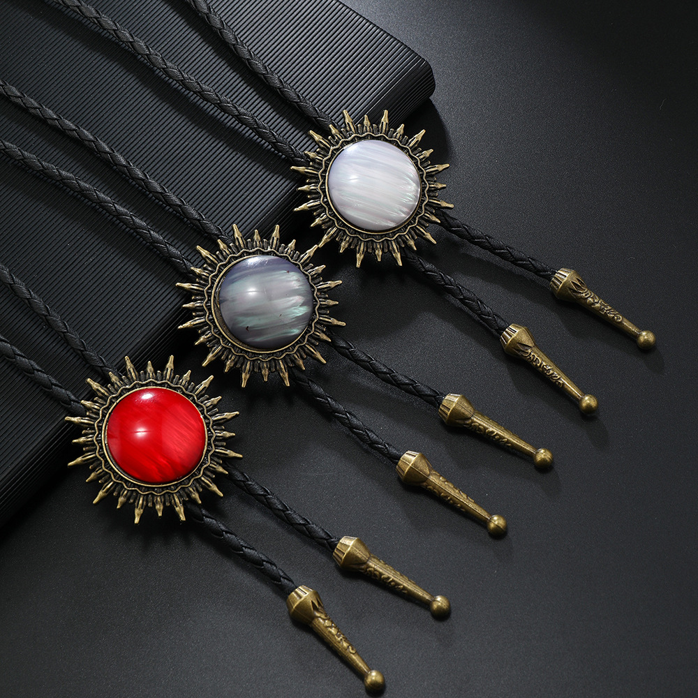 Cross-border New Vintage Distinctive Sun Gem Long Black pu Rope Necklace Men's Simple Polo Collar Necklace