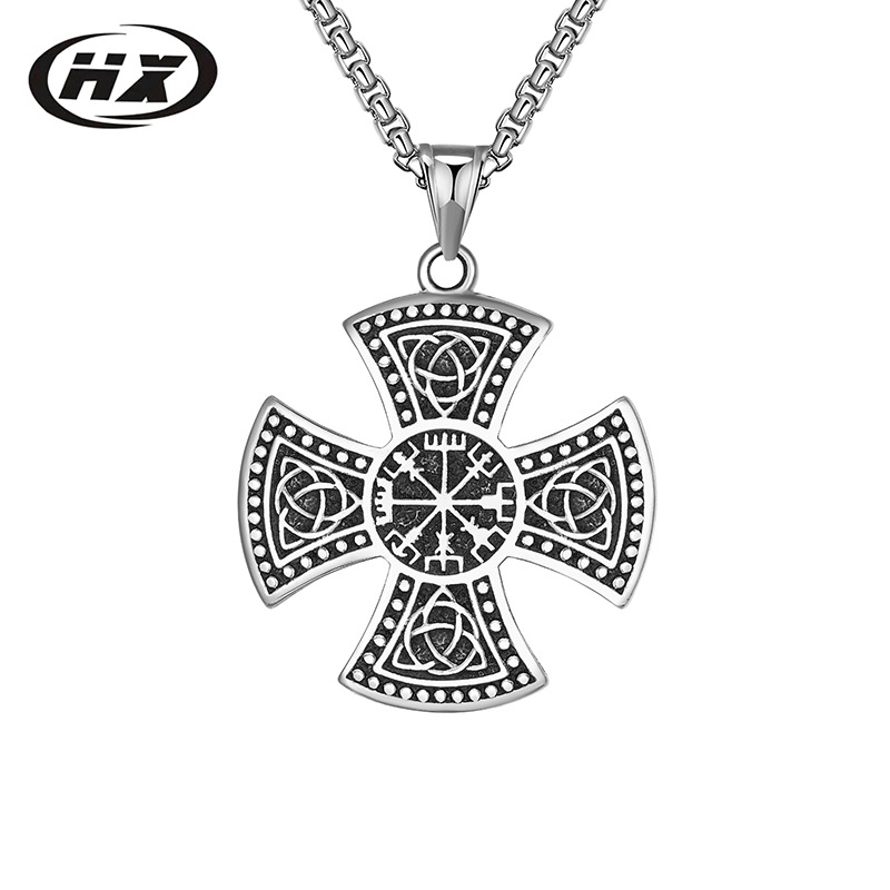 Europe and the United States popular new titanium steel Celtic Viking Rune logo cross pendant men's necklace jewelry wholesale