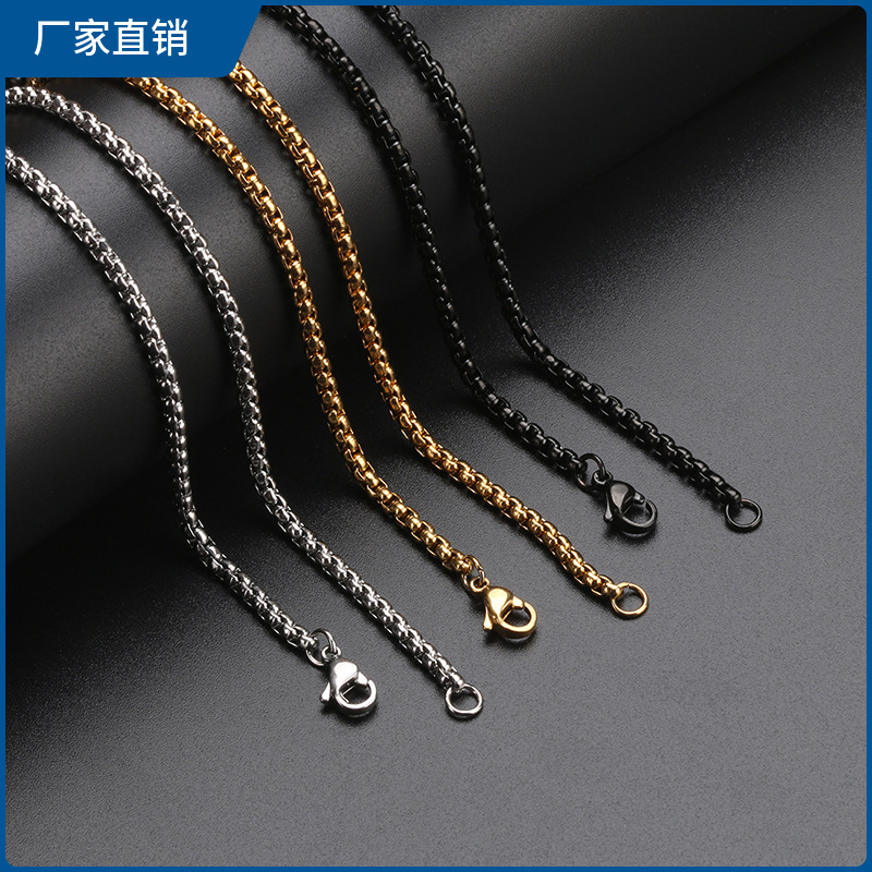 Factory direct stainless steel square pearl necklace titanium steel jewelry chain thick chain diy accessories men's snake bone chain