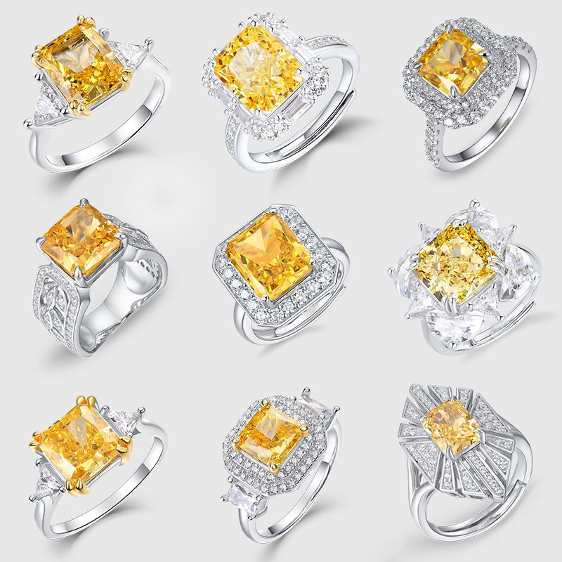 Cross-border S925 Silver Sugar Ice Flower Cut High Carbon Diamond Ring Women's Ring Exaggerated European and American Personality Wholesale Customization