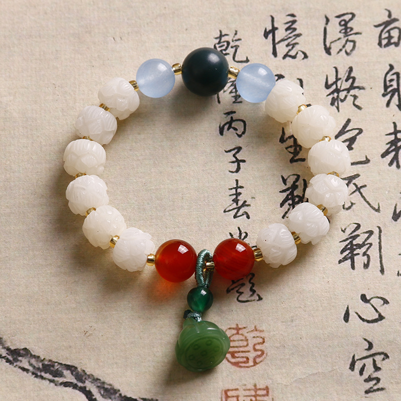 New Mori Style Fresh Style Pastoral Style Sweet Fairy Bracelet Women's Blessed White Jade Bodhi Lotus Bead Bracelet