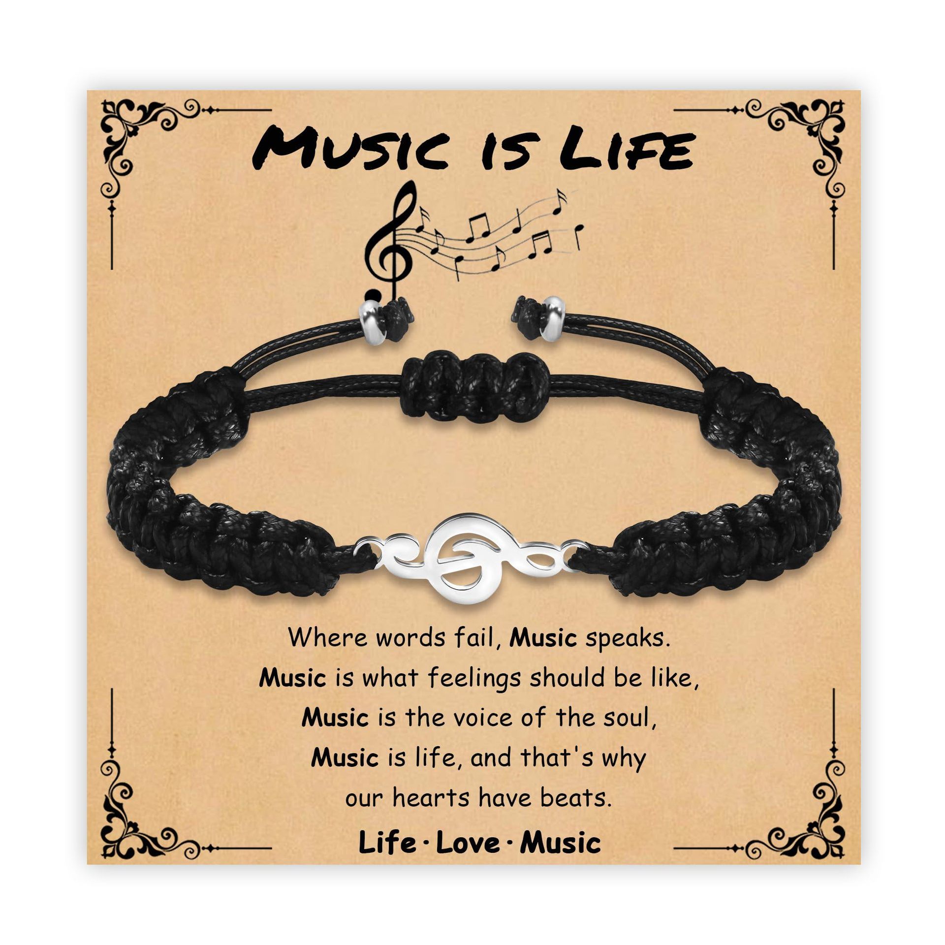 Hand-Woven Note Bracelet Black Rope Adjustable Stainless Steel Note Pendant Woven Steel Color Note Bracelet