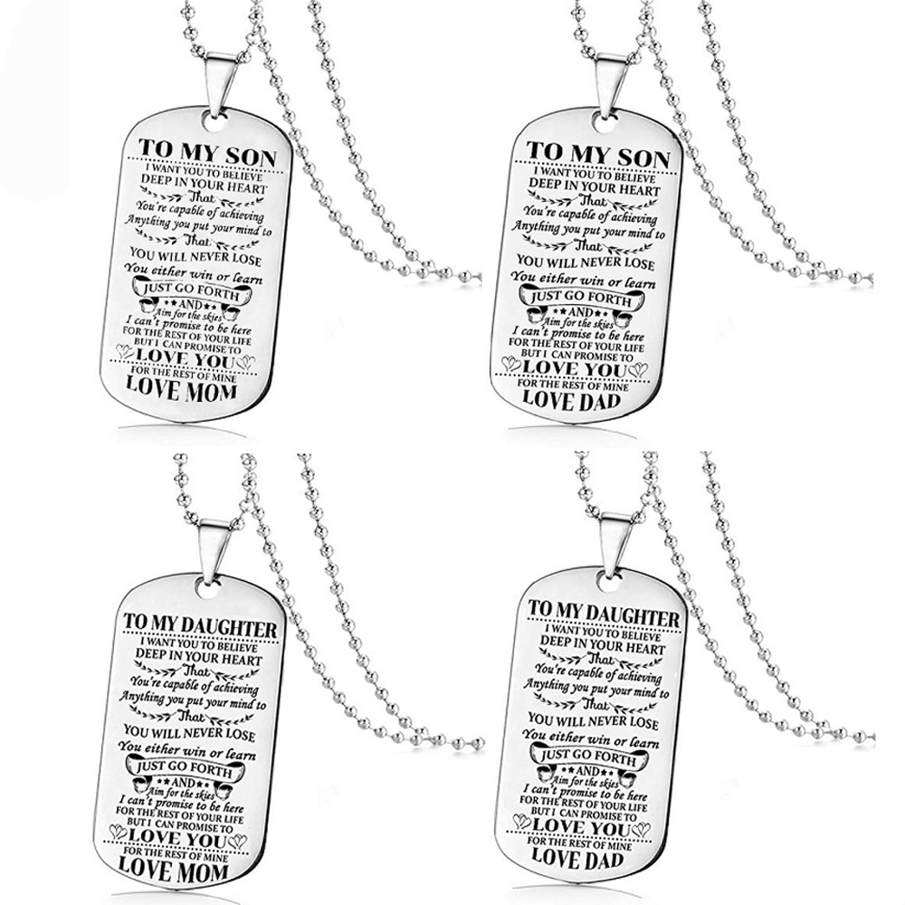 TO MY SON necklace stainless steel military tag dog tag customizable lettering pendant TO My Daughter