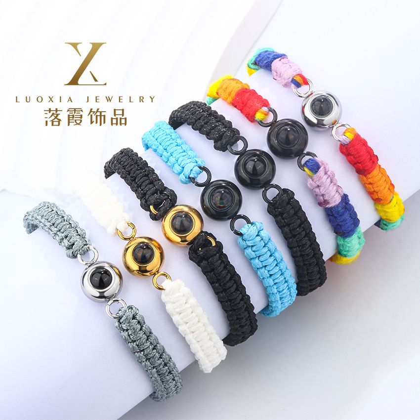 Birth year red rope hand-woven round titanium steel projection bracelet 100 languages simple bracelet customization