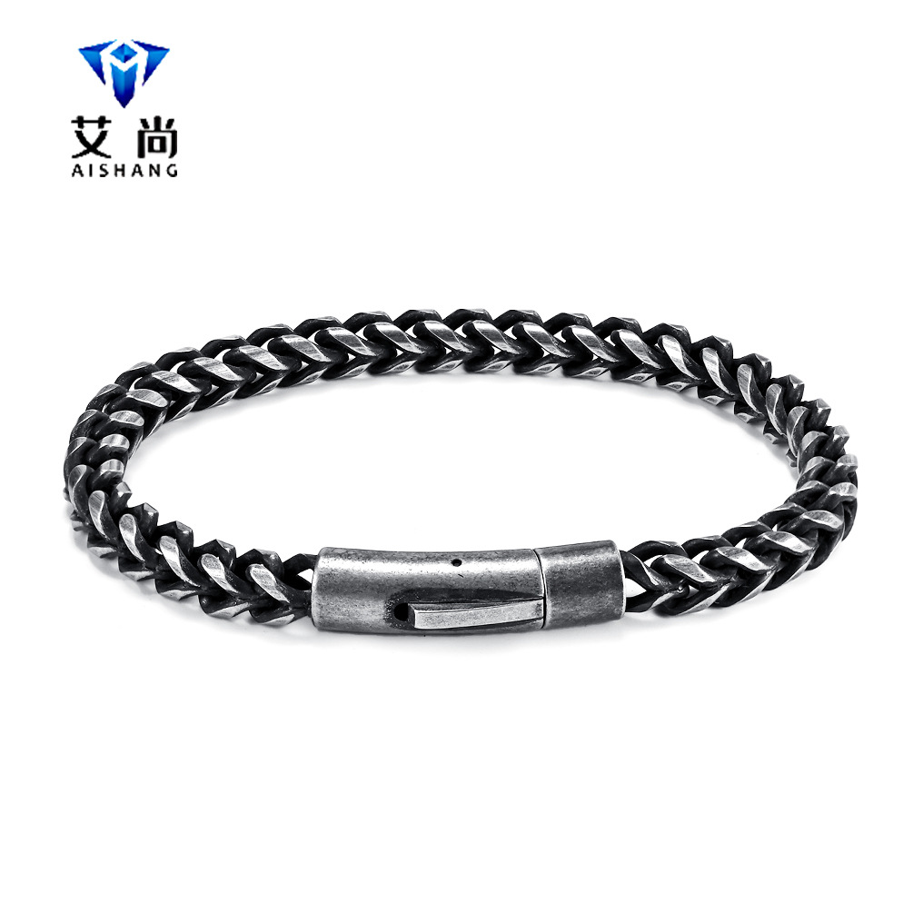 European and American Retro Style Men's Titanium Steel Bracelet Men's Explosive Fashionable Titanium Steel Hip Hop Cool Bracelet Jewelry Customization