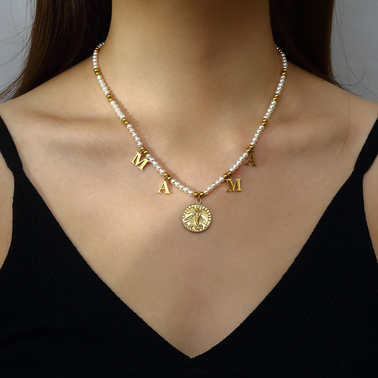Jinruiya Factory Oem Customized Titanium Steel Letter Beaded Zircon Tennis Chain Ladieswear's Day Gift Mom Necklace
