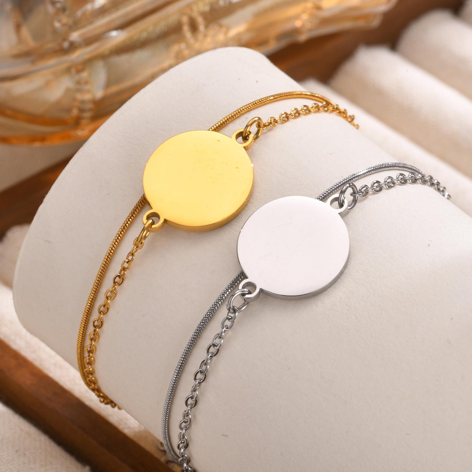 Spring Creek Water Border Engraving Personalized Ladies Stainless Steel Double-layer Chain Stacked Wear Gold Bracelet BR1994