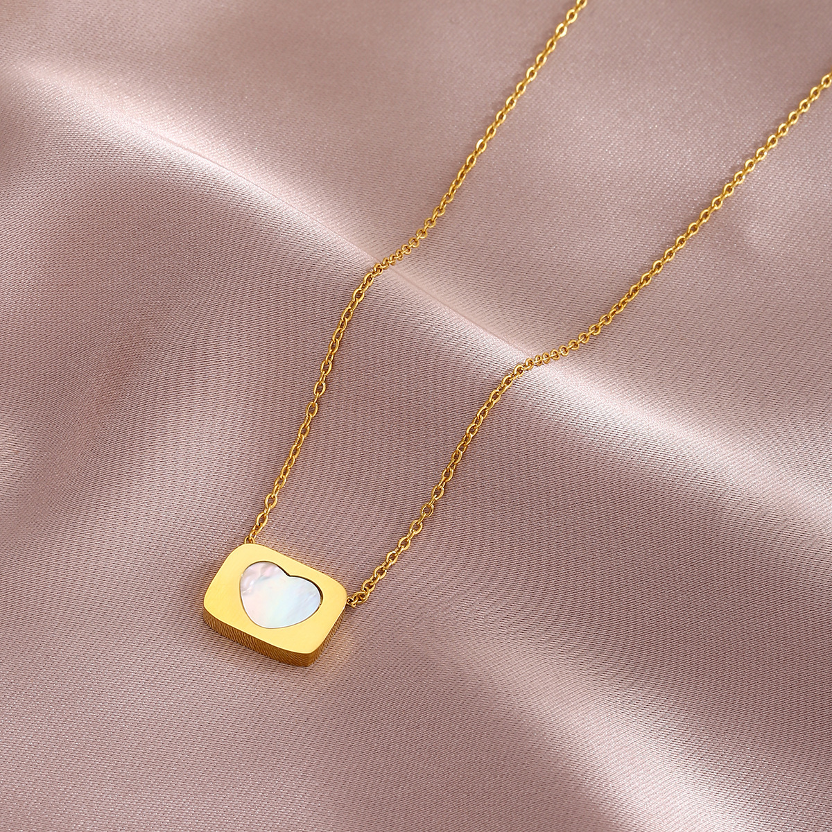 Factory Custom Seasonal New Korean Style Ins Style Natural Seashells Peach Heart Necklace Titanium Steel Chains Light Luxury Niche Chain