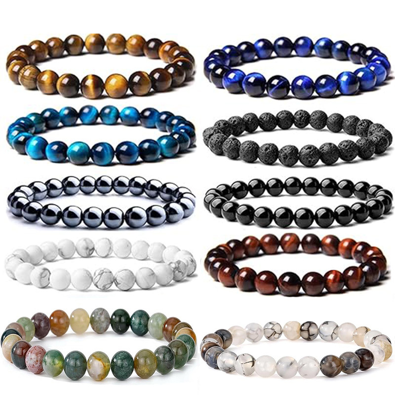 AliExpress 8mm Semi-Precious Stone Beaded Bracelet Men Women Tiger Eye Lava Gift Crystal Beaded Bracelet