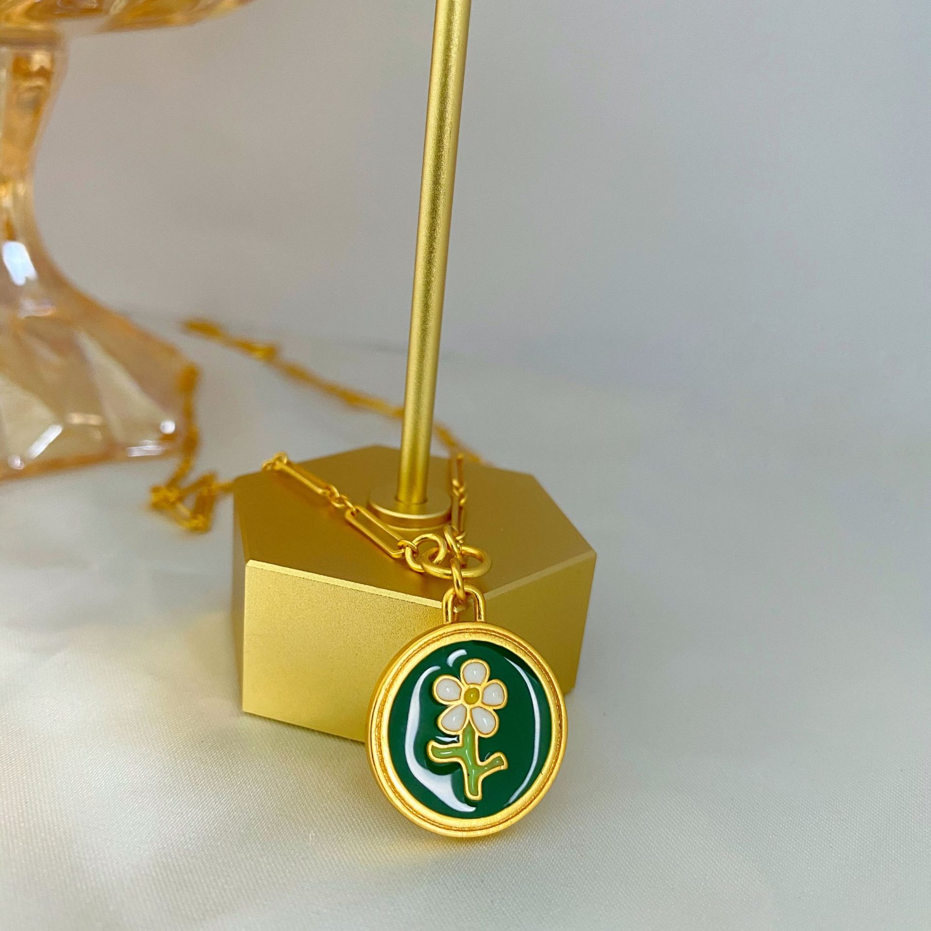 Customized Japanese Style Style Small Fresh Oil Dripping Flower Necklace Women's Niche Design Color-Preserving Electroplating Simple Elegant Clavicle Chain