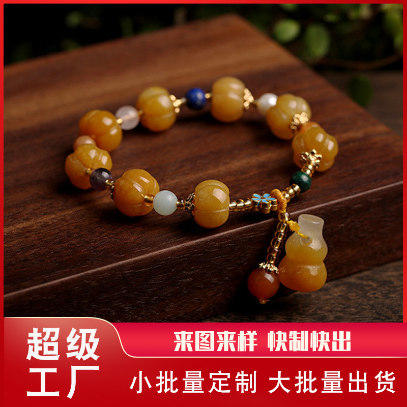 Processing and Customization Xinjiang Gold Silk Jade Bracelet Wholesale Drum Beads Pumpkin Beads Bracelet Topaz Pixiu Bracelet for Women