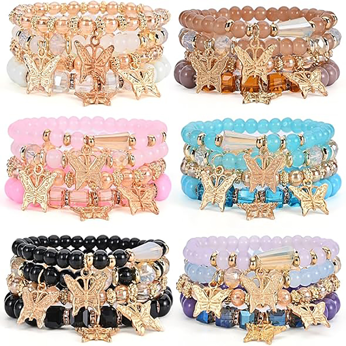 Customized Cross-Border European and American Bohemian Bracelets, Ethnic Glass Elastic Four-Layer Butterfly Pendant Jewelry, Stackable Animal Design