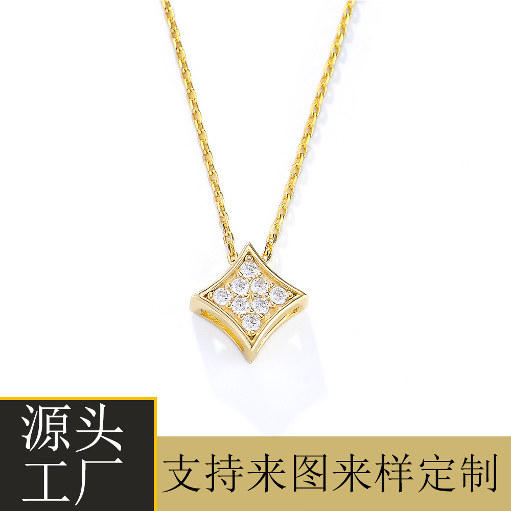 European and American jewelry niche luxury geometric square inlaid zircon pendant necklace manufacturers custom sterling silver clavicle chain versatile